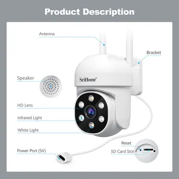 Srihome SH061 Wireless Monitoring Camera PTZ AI 1080P Home Security Camera Night Vision Human Detection Video Surveillance