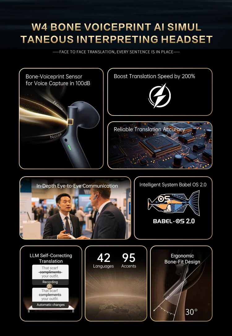 Timekettle W4 Translation Earbuds,for Global Business & Relationships,Bone-Voiceprint Sensor for Clear Voice in Noise