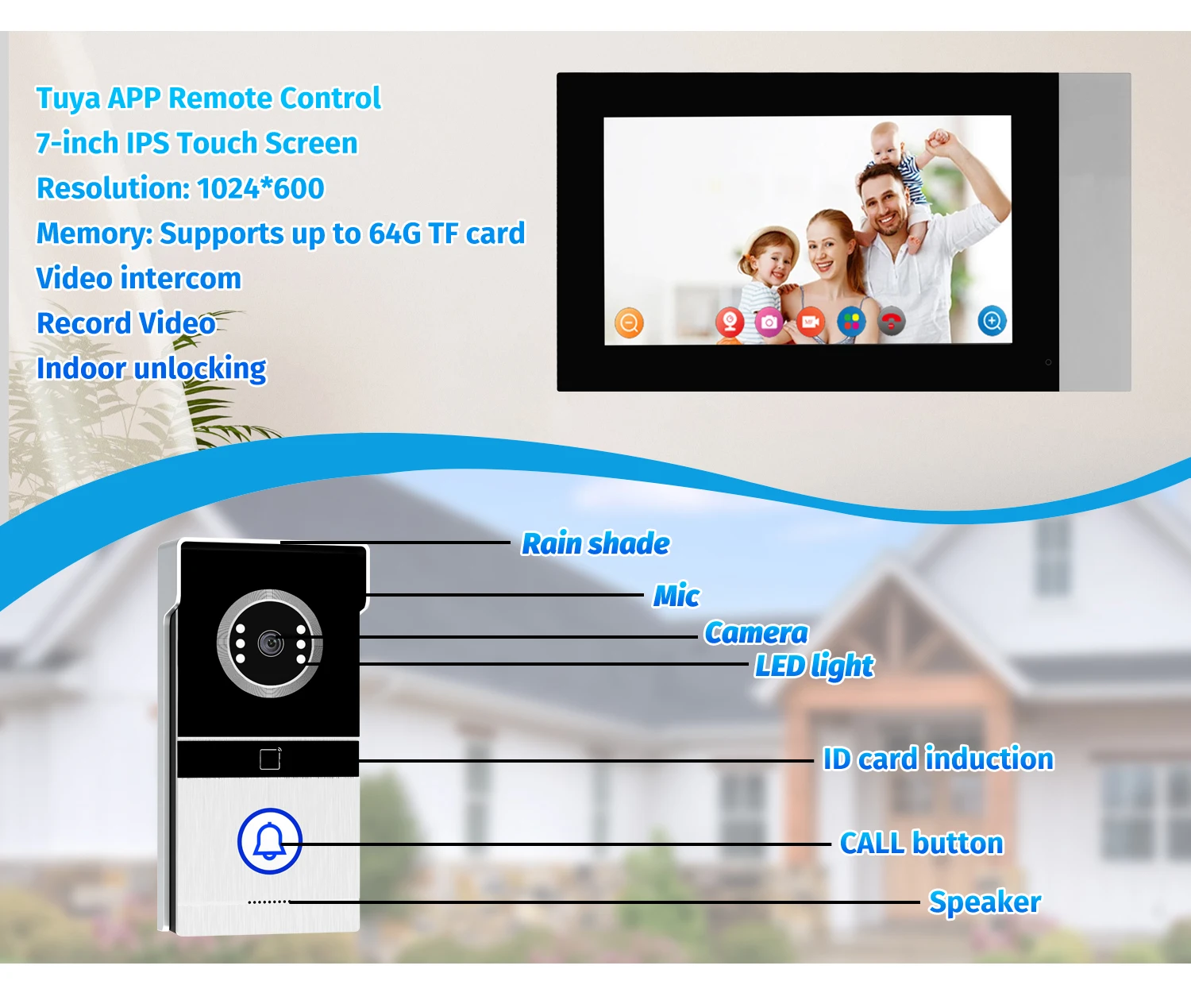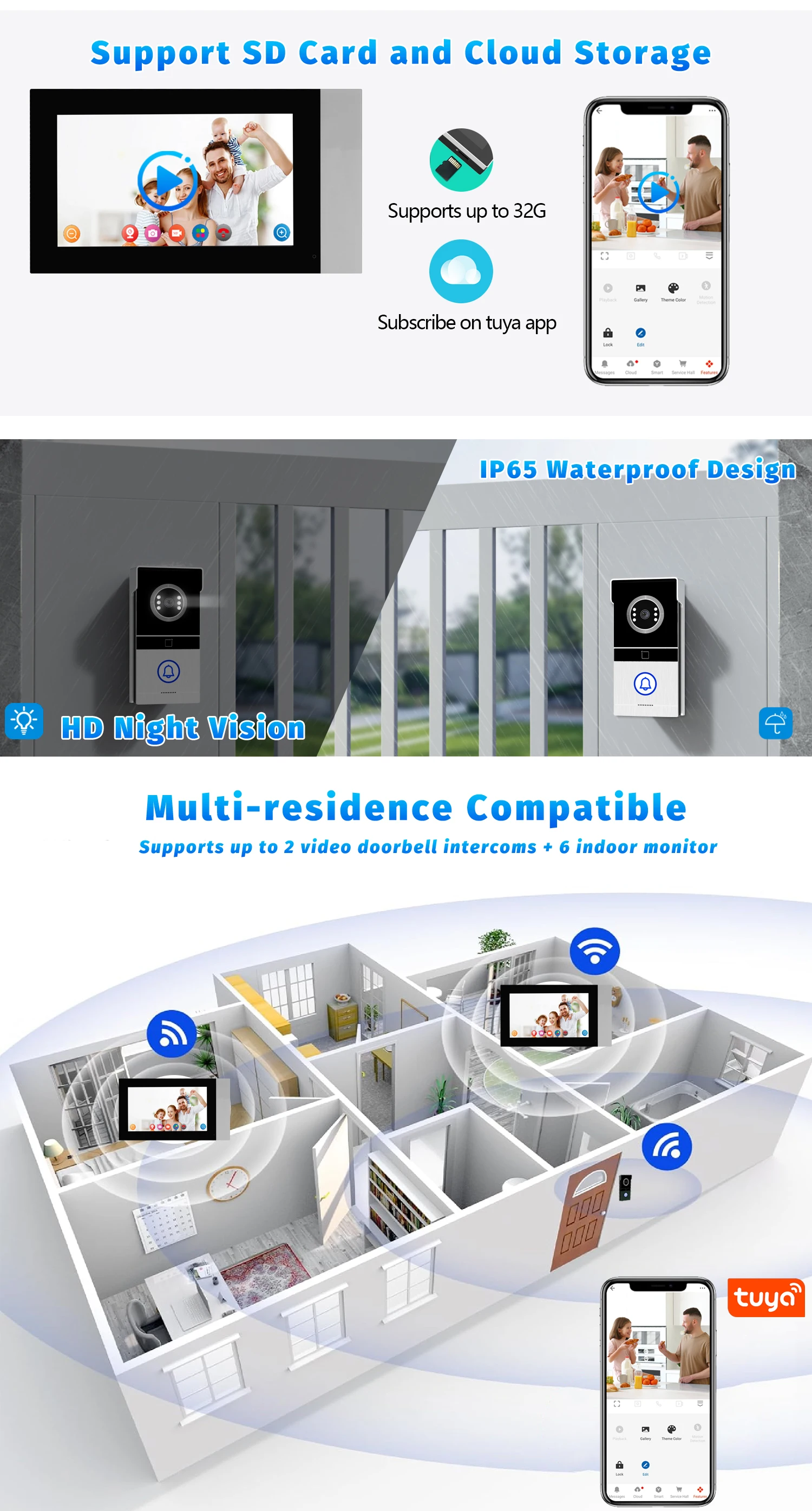 The video will be automatically recorded(press the doorbell or triggers the PIR) and saved in the included TF card. At the same time, you can use the Tuya mobile app to view recorded videos in the cloud (ubscription required)