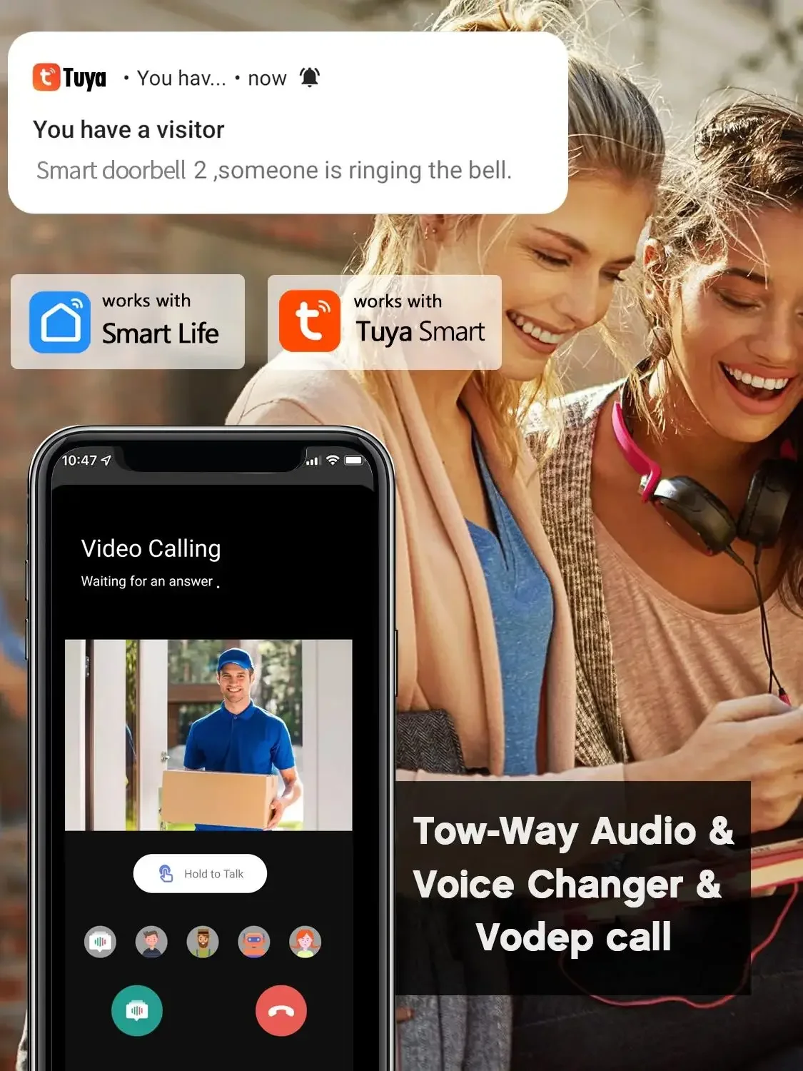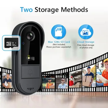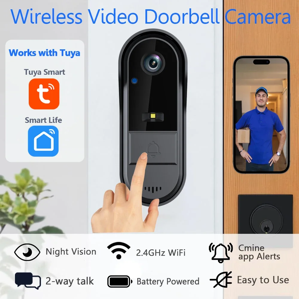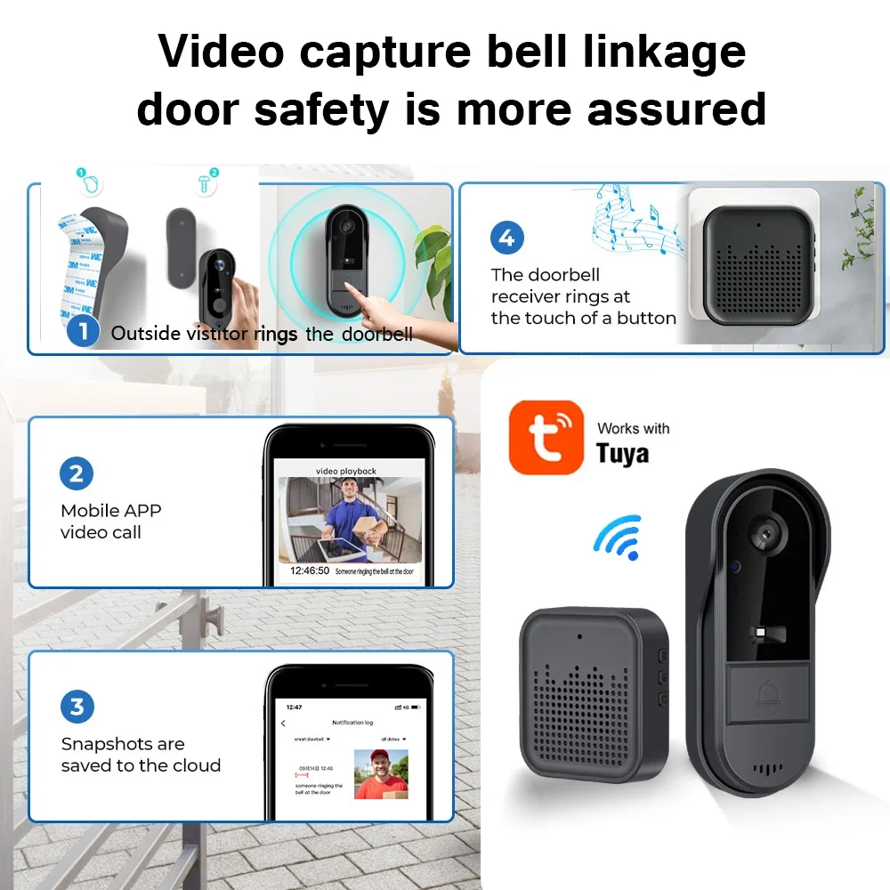 Tuya WiFi doorbell 2-way HD 1080P, microSD/cloud, waterproof, 1000mAh battery, long standby,Wireless Security Camera