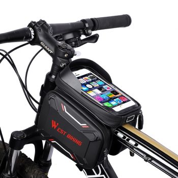 I purchased this to add to my Mountain bike. So far I’ve used it on about 20 miles of road riding. and it did not shift around. It securely holds my phone. The touchscreen works flawlessly. The 3 hook and loop straps securely keep the bag attached to the frame. There is a lot of room in the bag for keys, sunglasses, and other small items. Bag is very light. It’s a little wider than I expected, but it would need to be to hold my larger phone. Overall a great product. Very happy with the purchase.