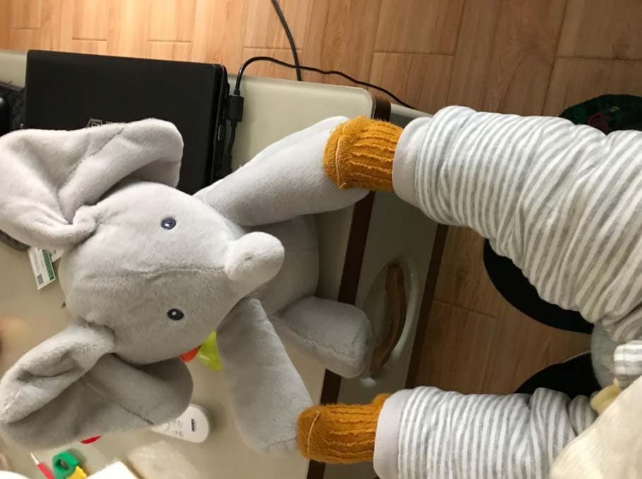 My 14 month old loves playing peek a boo so when I saw this, I knew I had to buy it for Her. I can’t decide if she loves it more Or if I do. Haha!! It’s so adorable and really nice quality and a good size. She gives the elephant hugs all day long and giggles when the ears move. This was the perfect toy for her!