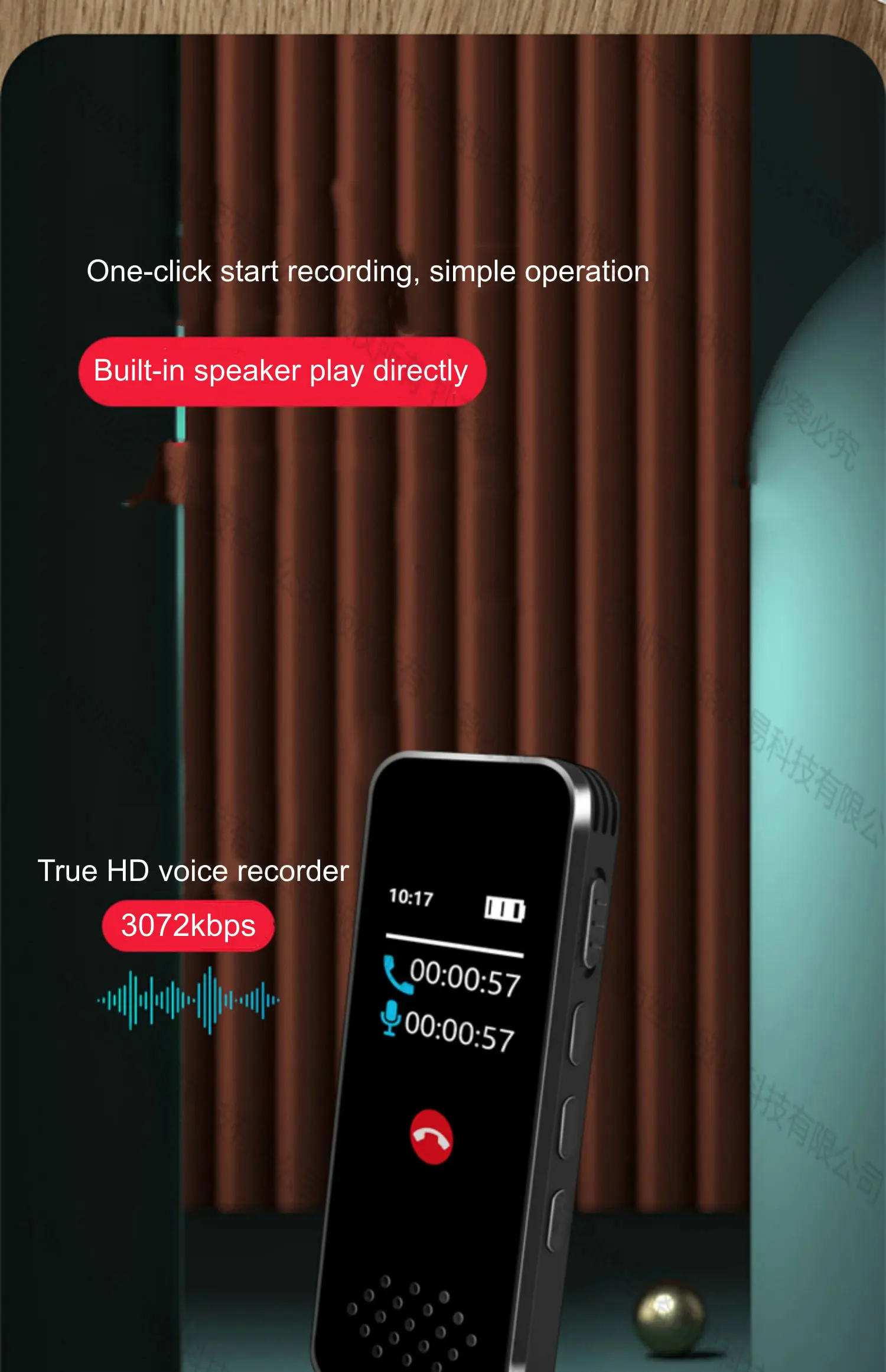 High – Definition up to 3072Kbps voice recording.