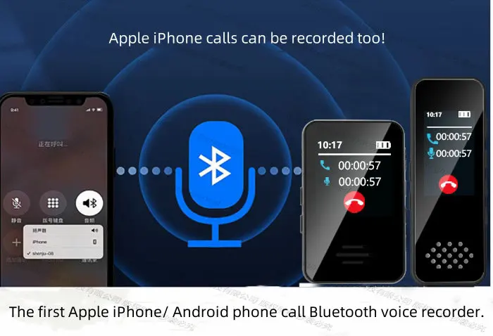The first Apple Android phone calls Bluetooth voice recorder.